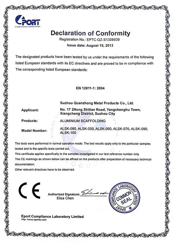 开云app登录入口-开云(中国)专注铝合金制品的开发“产品就是人品”的企业理念,不断进行技术创新、设备创新、服务创新、和管理方式创新来继续研发出更多满足未来发展需要的产品, 公司产品通过欧盟认证取得CE认证并取得证书,铝合金脚手架系列产品通过SGS认证,铝合金平台和梯具类产品均严格按照GB12142-2007,GB17888等标准设计生产。